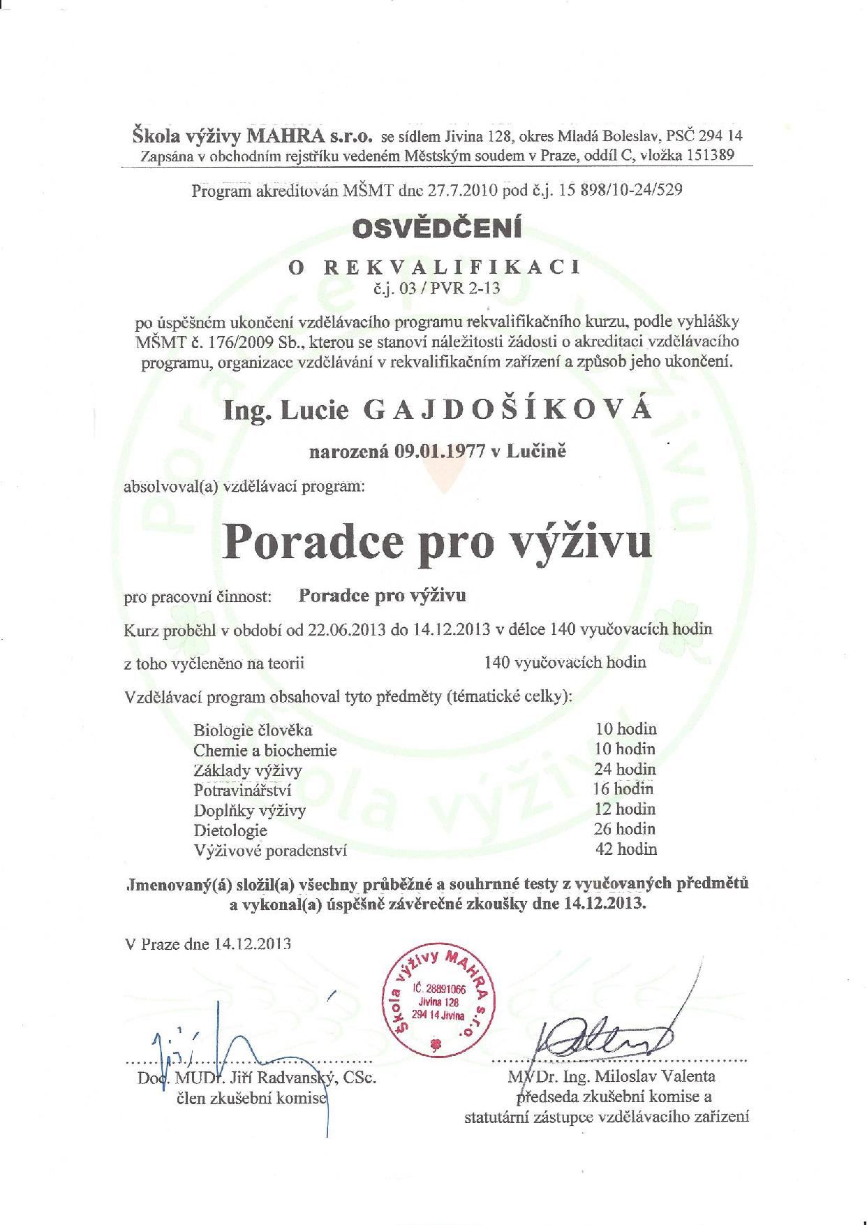 Kontakt POTKÁME SE? Napište mi nebo zavolejte, domluvíme si schůzku. Ráda Vám pomůžu. Ing. Lucie Gajdošíkovávýživový poradce E-mail / lgajdosikova@seznam.czTel / +420 602 567 578IČ / 08415153